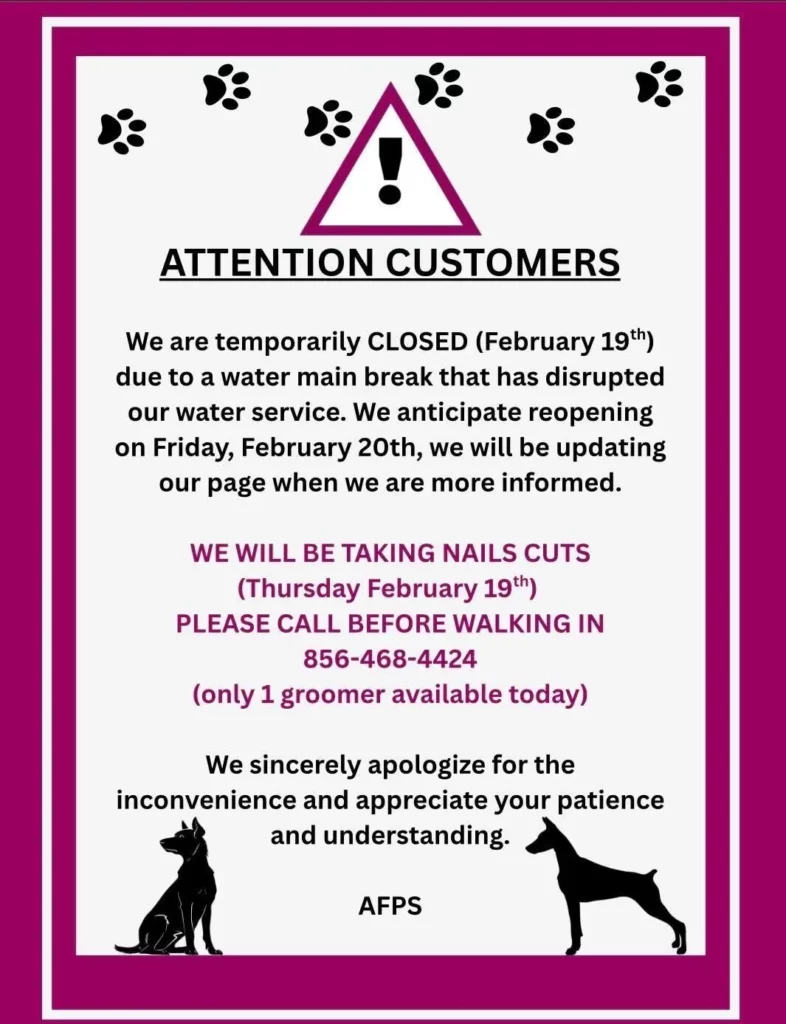 Please note, dogs that are harder to handle – $40, plus TAX (to be determined by groomer)